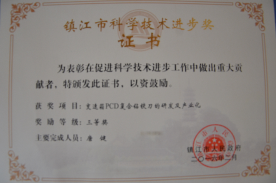 多年來,企業(yè)通過ISO9001國際質(zhì)量體系認(rèn)證,被中國中輕產(chǎn)品質(zhì)保中心授予“全國金剛石制造行業(yè)質(zhì)量放心滿意單位”,獲得江蘇省高新技術(shù)企業(yè)稱號(hào),榮獲江蘇省小巨人稱號(hào),變速箱PCD復(fù)合鉆鉸刀獲省高新技術(shù)產(chǎn)品等等。